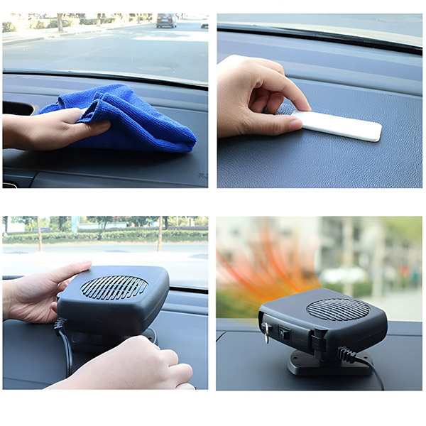 Fără unelte necesare! Montați-l ușor pe bord cu o bază adezivă, conectați-l la priza brichetei mașinii și sunteți gata pentru călătoria de iarnă.