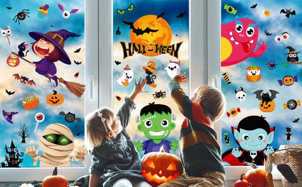 Autocolante cu elemente unice de Halloween, mumie, vampir, vrăjitoare, liliac, păianjen, dovleac, castel bântuit, atmosferă foarte de Halloween
