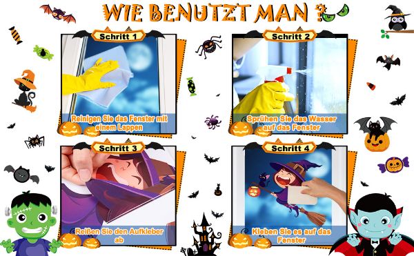 - Dimensiune: autocolante de Halloween pentru ferestre, constând din 10 autocolante, fiecare 21 x 29,5 cm