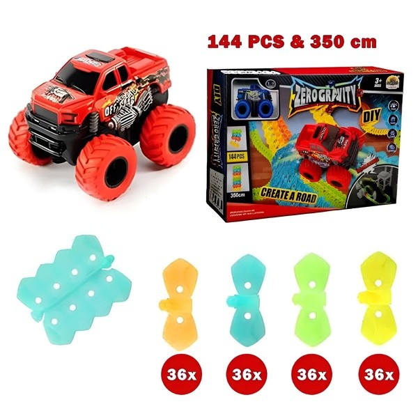 🚗 Veți primi – 1x Mașină LUMITRACK + 144x Piese de Pistă
