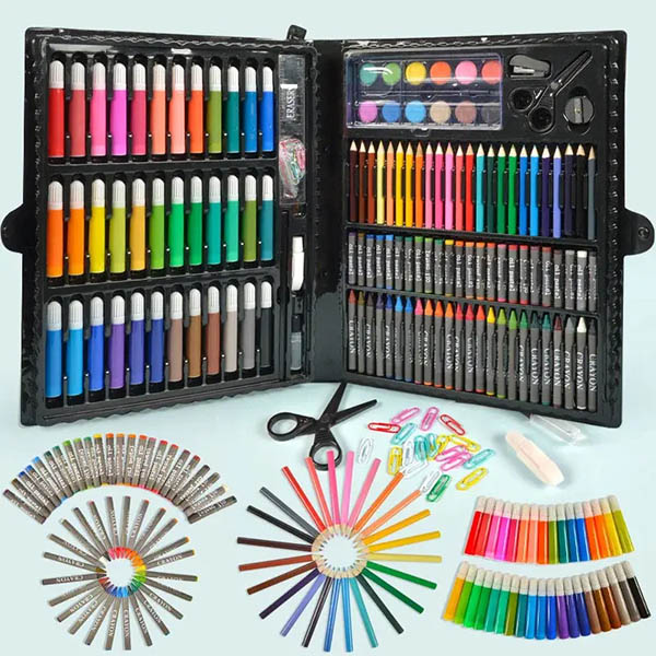 Acesta este mai mult decât un penar. Sunt 150 de piese de creativitate pură. De la schițare la pictură, la lipici și foarfece — totul este inclus.
