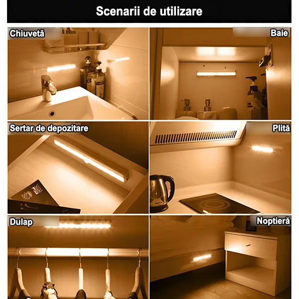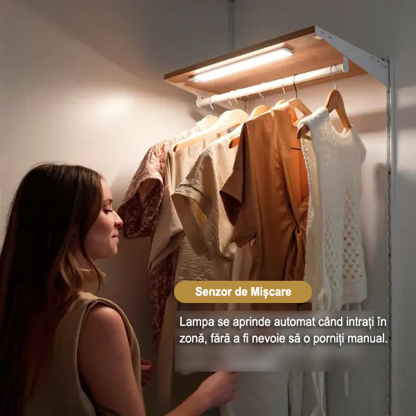 Facilitați îmbrăcarea prin instalarea acestei lămpi în interiorul dulapului sau garderobei. Aceasta se aprinde automat când deschideți ușa, ajutându-vă să vă găsiți hainele fără a căuta în întuneric.