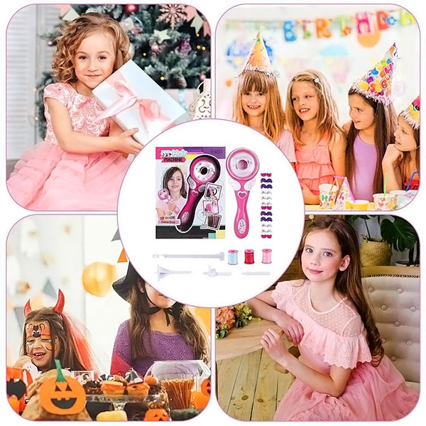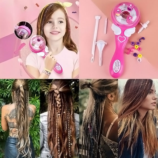 🎁 Setul include 12 agrafe de păr, 3 role cu ață colorate și alte accesorii pentru distracție maximă la împletit