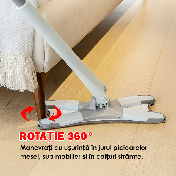 Uitați de mopurile ude și mâinile murdare! Sistemul nostru avansat de stoarcere automată imită stoarcerea manuală, eliminând de 2 ori mai multă apă decât mopurile tradiționale pentru o curățenie mai rapidă și mai ușoară!