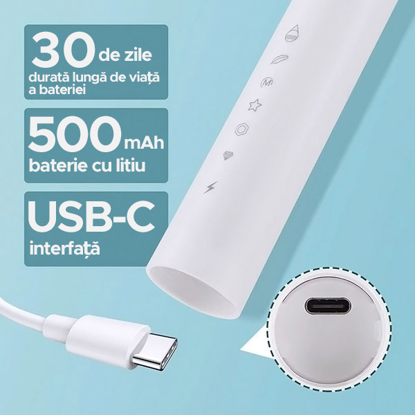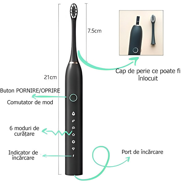 🦷 Posibilitatea de a achiziționa capete de periuță de rezervă, pentru o utilizare de lungă durată și o igienă completă!