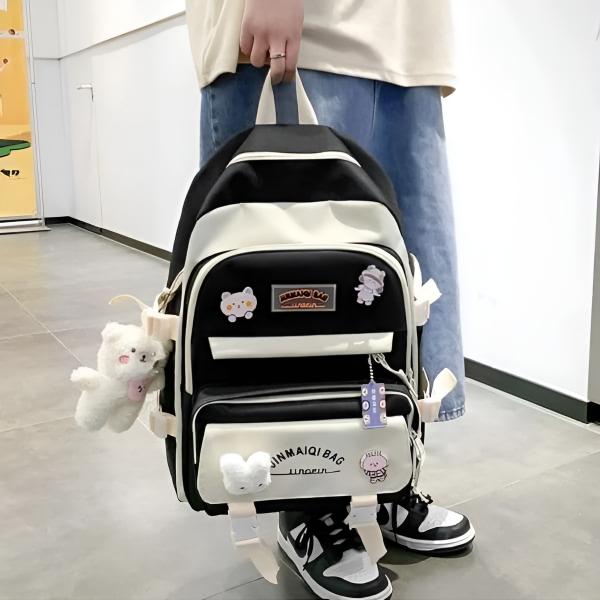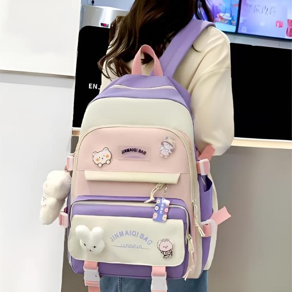 Penarul inclus nu este doar pentru rechizite școlare – se dublează ca o geantă pentru machiaje! Păstrați esențialele de machiaj într-un singur loc și accesați-le rapid, fără să căutați prin rucsac.