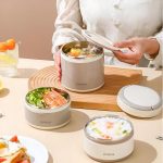 Bucurați-vă de mese calde gătite acasă oriunde ați merge cu acest set de recipiente pentru alimente cu mai multe straturi.