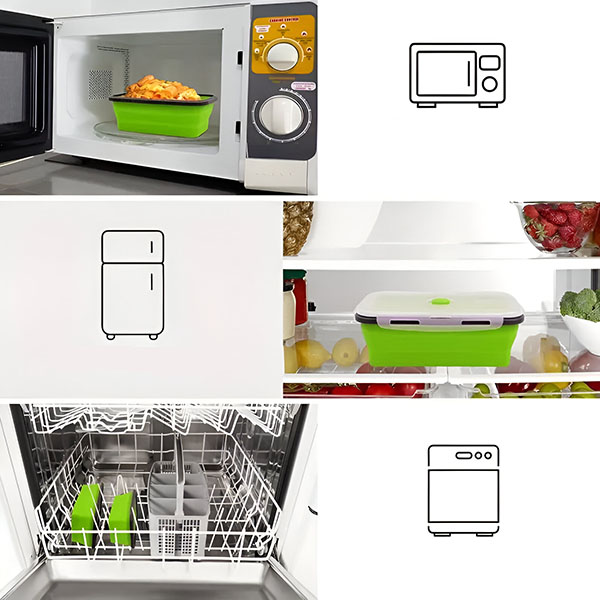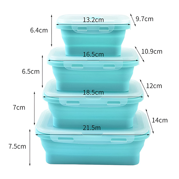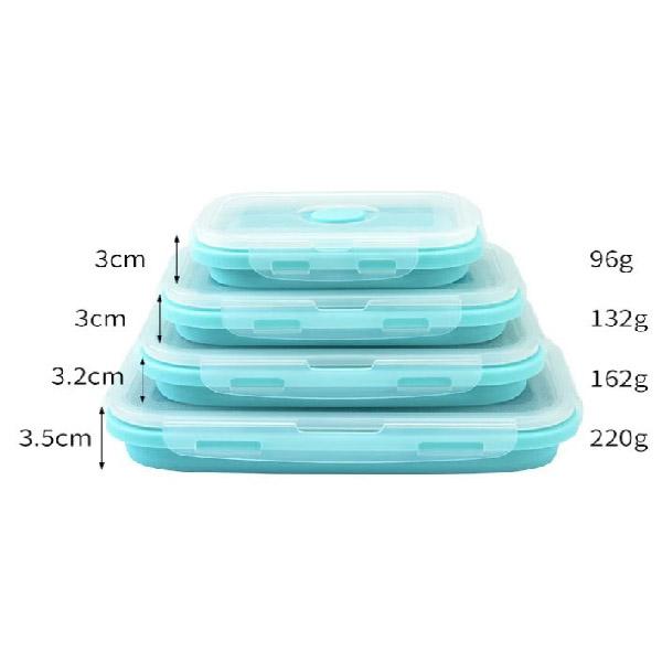 📦 Pachetul Include: 4x Recipiente pliabile din silicon (350 ml, 500 ml, 800 ml, 1200 ml)