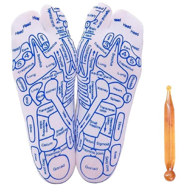 Punctele reflexe imprimate pe șosete vă permit să masați cu ușurință și să eliberați stresul pe tot corpul.
